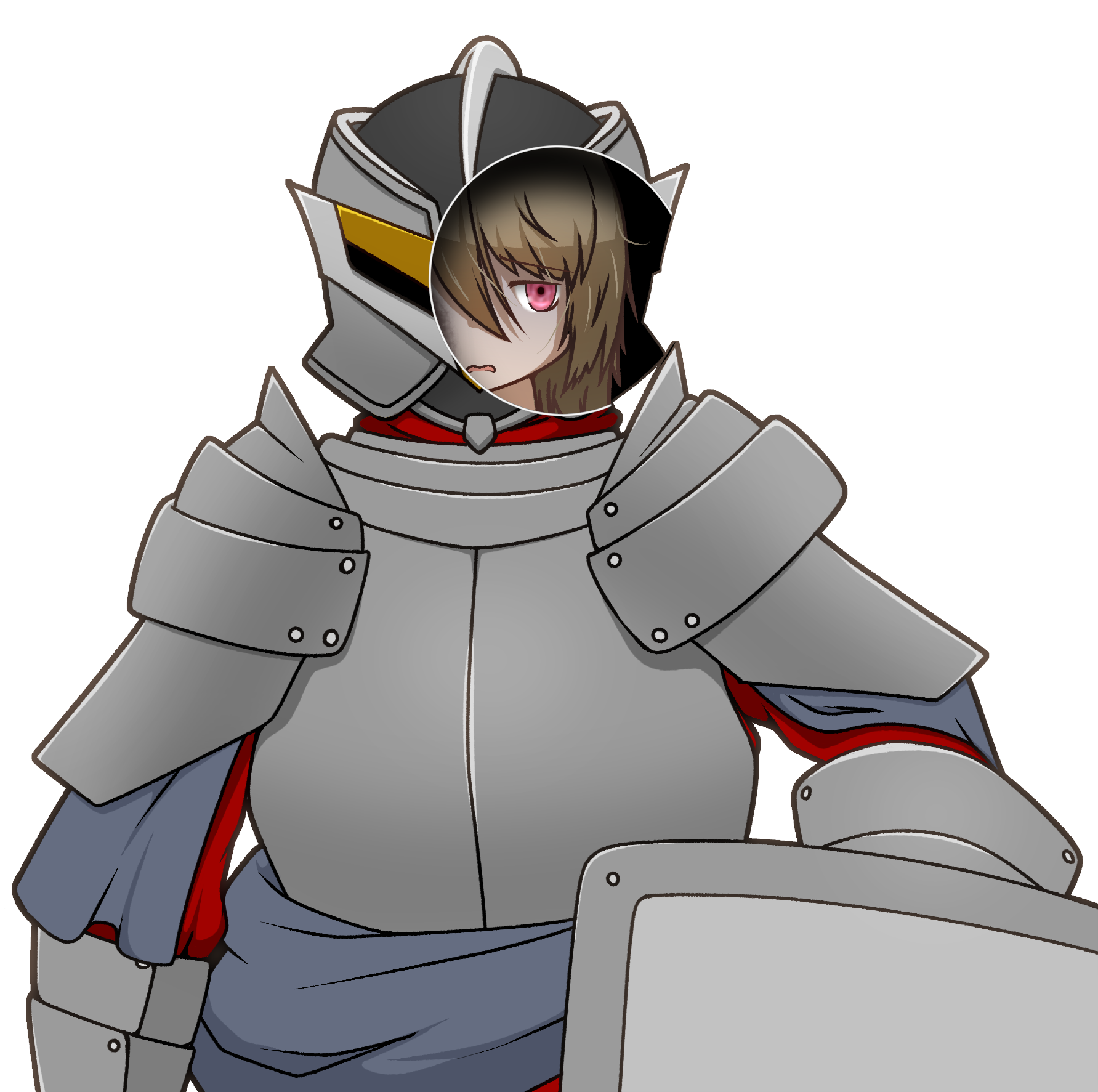 肌を見せることを非常に嫌がる。鎧の下には幾重もの服の層があり、脱がせど脱がせど素肌に辿り着かない。他にも、額と背中を隠すために髪を長く伸ばしていたり、常に手袋を嵌めたままだったりと、肌を覆うためなら手段を選ばない。