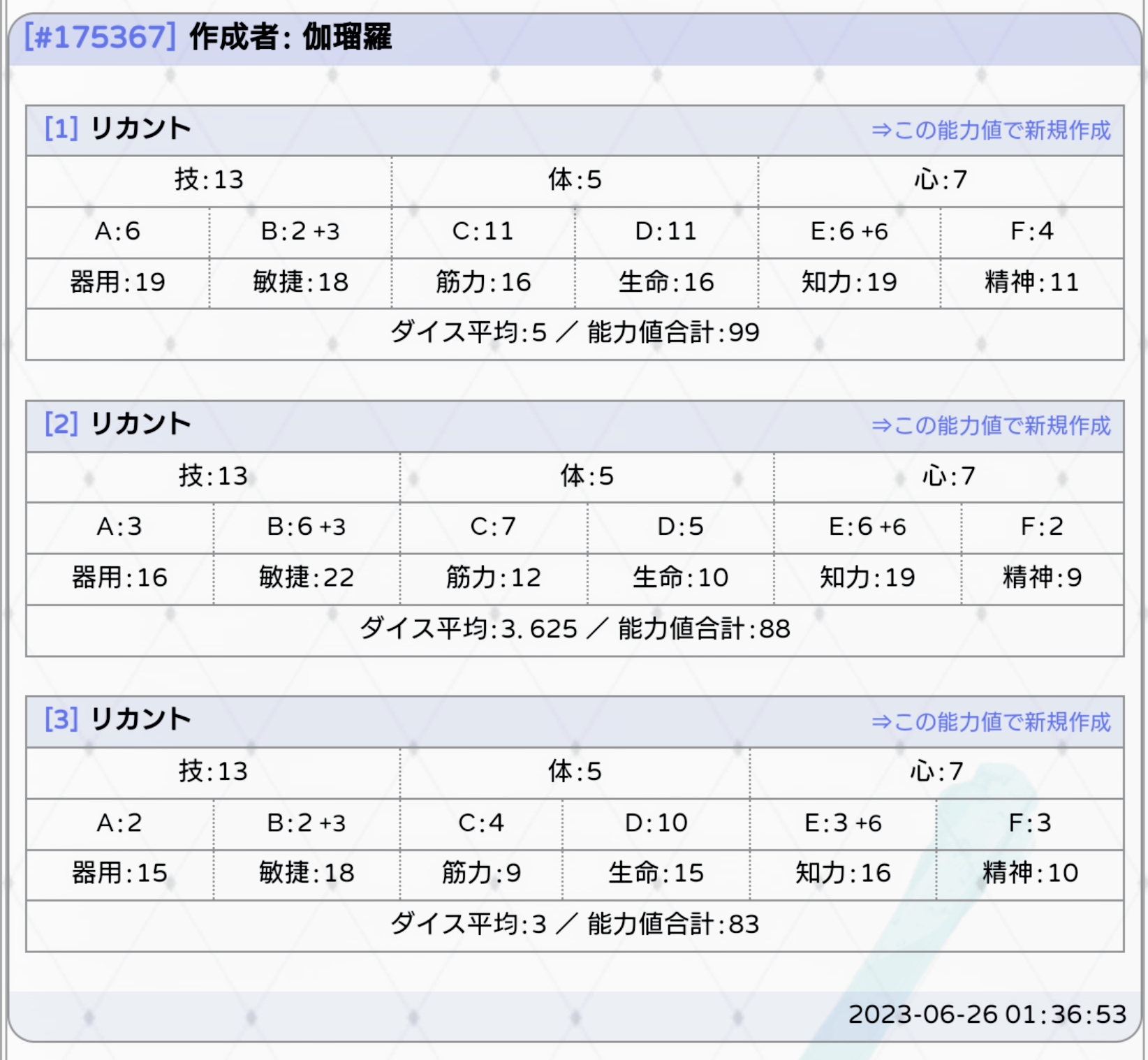 | 能力値作成履歴#175367-1 | ||||||||