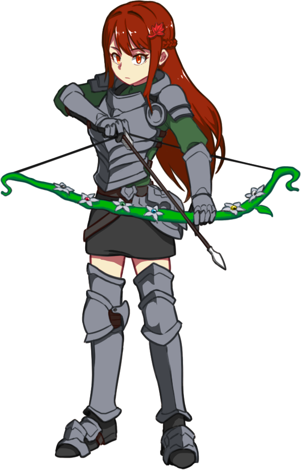 その他:赤髪長髪(サイドがみつあみ)、楓の髪飾り