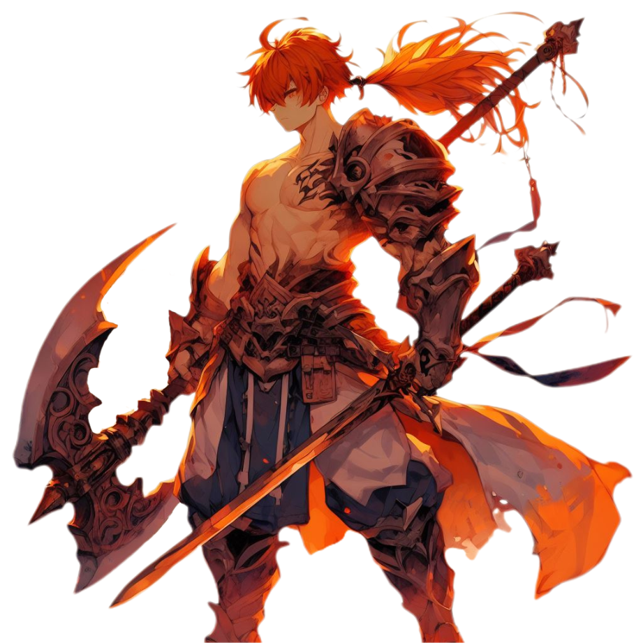 力がとても強く、本人は軽戦士を名乗っているが2mを軽く超える武器二刀流での敵滅殺スタイル。