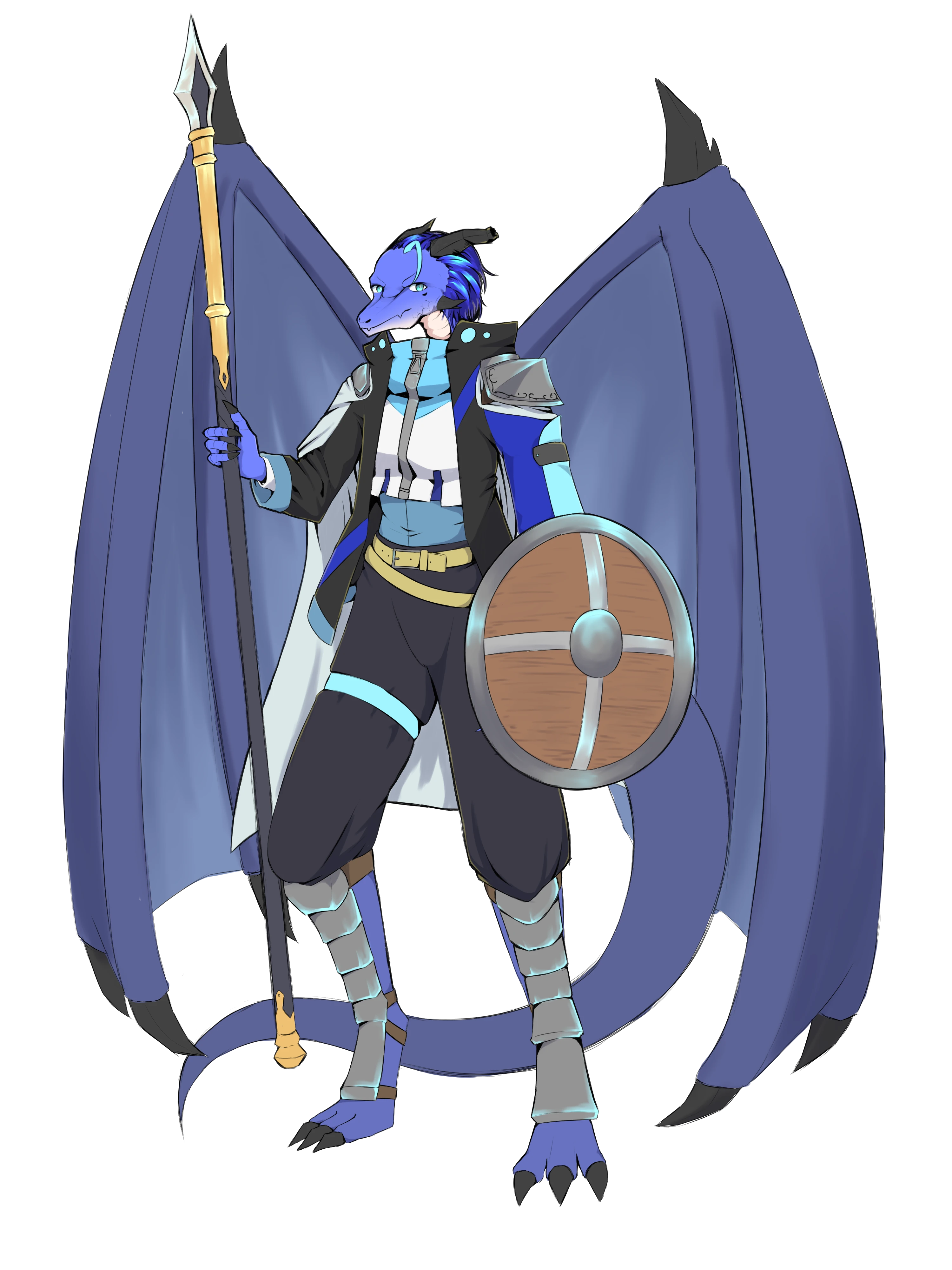 青い鱗と青い髪のリルドラケン。