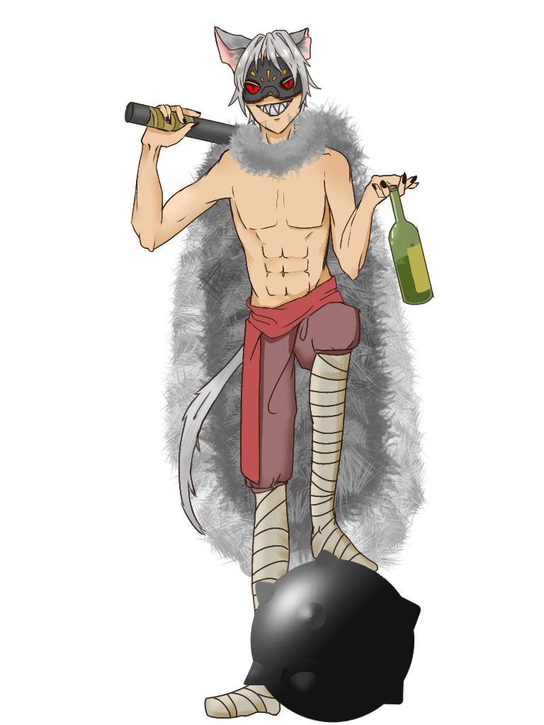 短絡的で楽観的な性格であり、酒と強いやつに目がない。