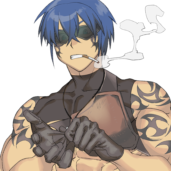 大柄なルーンフォークならではのガタイ・青髪・青眼