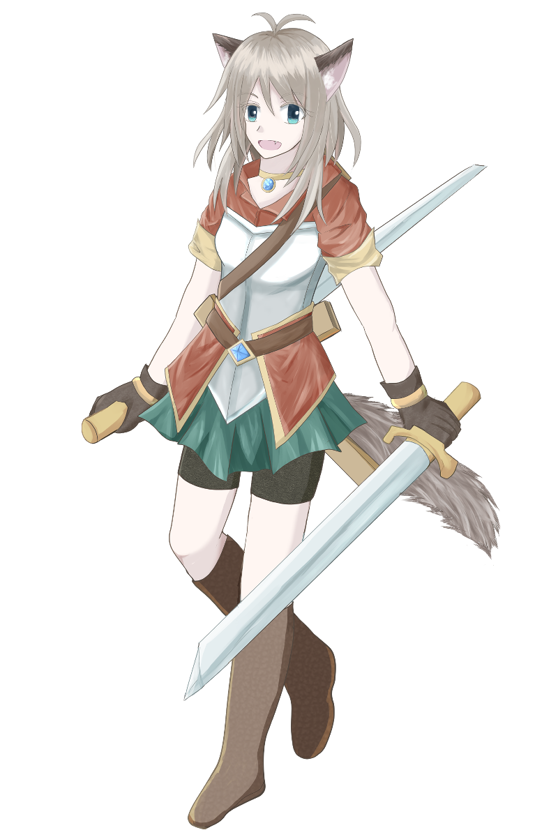 猫耳にラグラドールのような太い尻尾を持つ、マイペースで陽気な少女。尻尾はよく狸のものと勘違いされる。「たぬきじゃないですぅ!!」