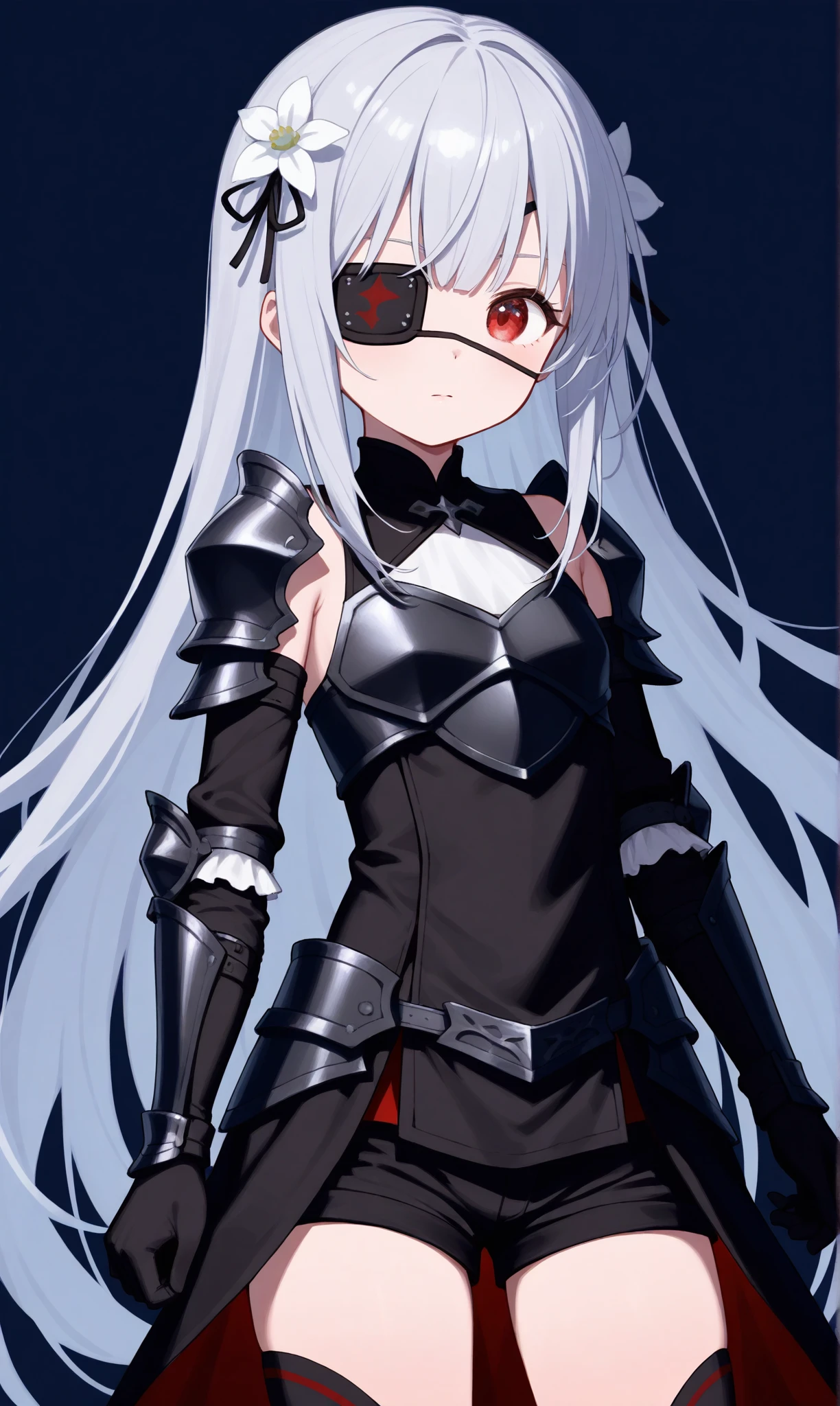[身体的特徴]:白い百合の髪飾り・眼帯