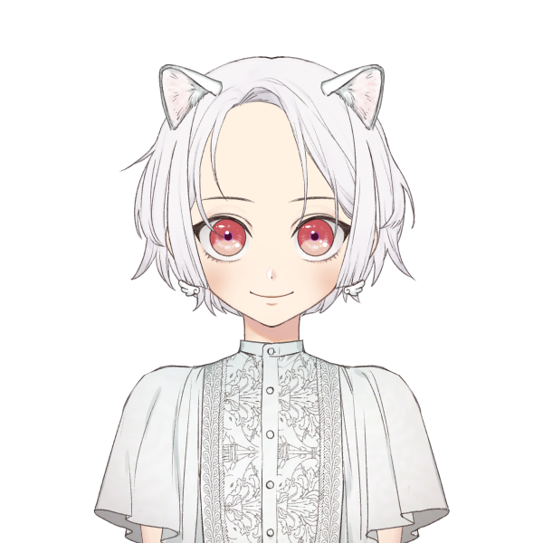 猫の姿は赤い目の真っ白な猫です。