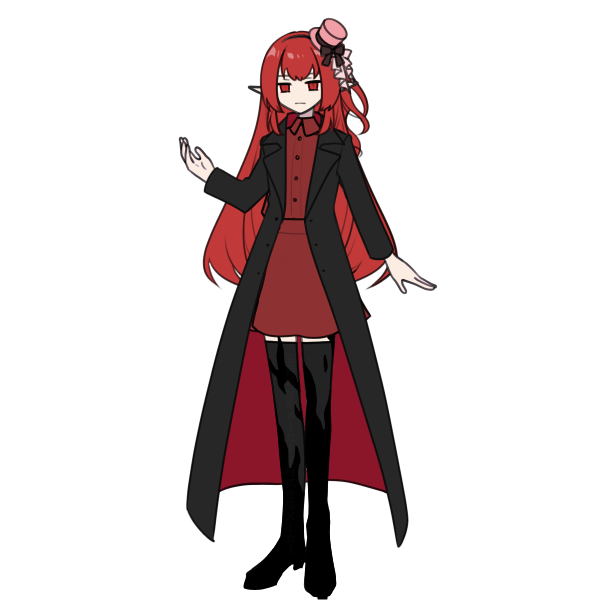 赤い髪。赤い瞳。白寄りの肌。なぜか日焼けしない。外見的特徴や能力はエルフだが本当にエルフかは不明。