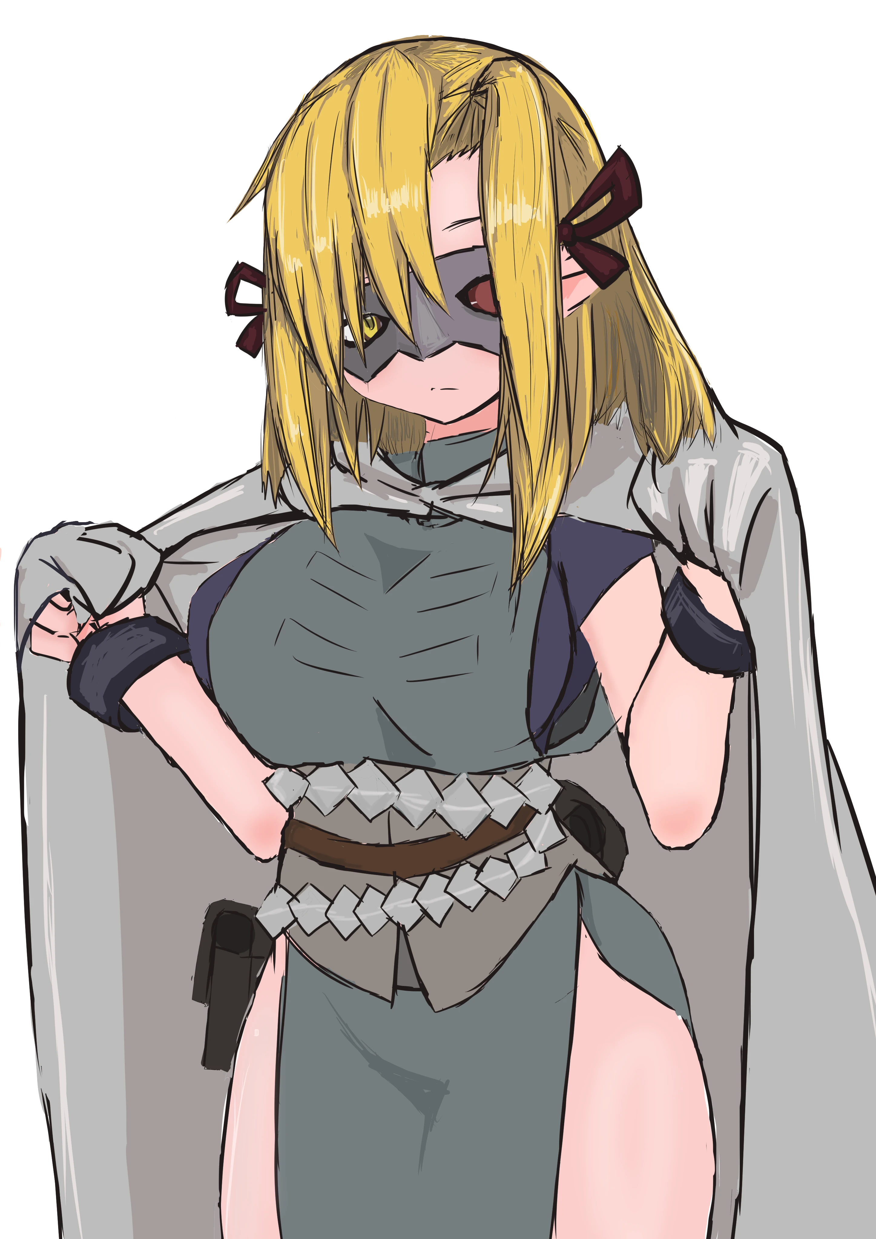 普段は顔を隠すように固焼きのアイマスクのような面をかぶっている。情報を積極的に聞き出すことはするが他と組むときは一歩引いて佇んでいることが多いのでよく背後霊かなんかと勘違いされているが本人はきにしていない。