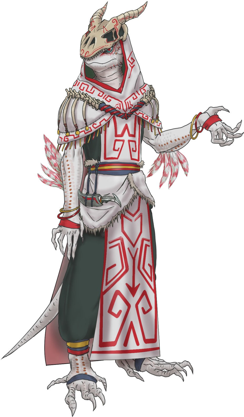 イメージはネイティブアメリカンのシャーマン。普段は理知的で温和、鷹揚だが、そう見えるのは狂信しているからであり、芯はとても頑固。