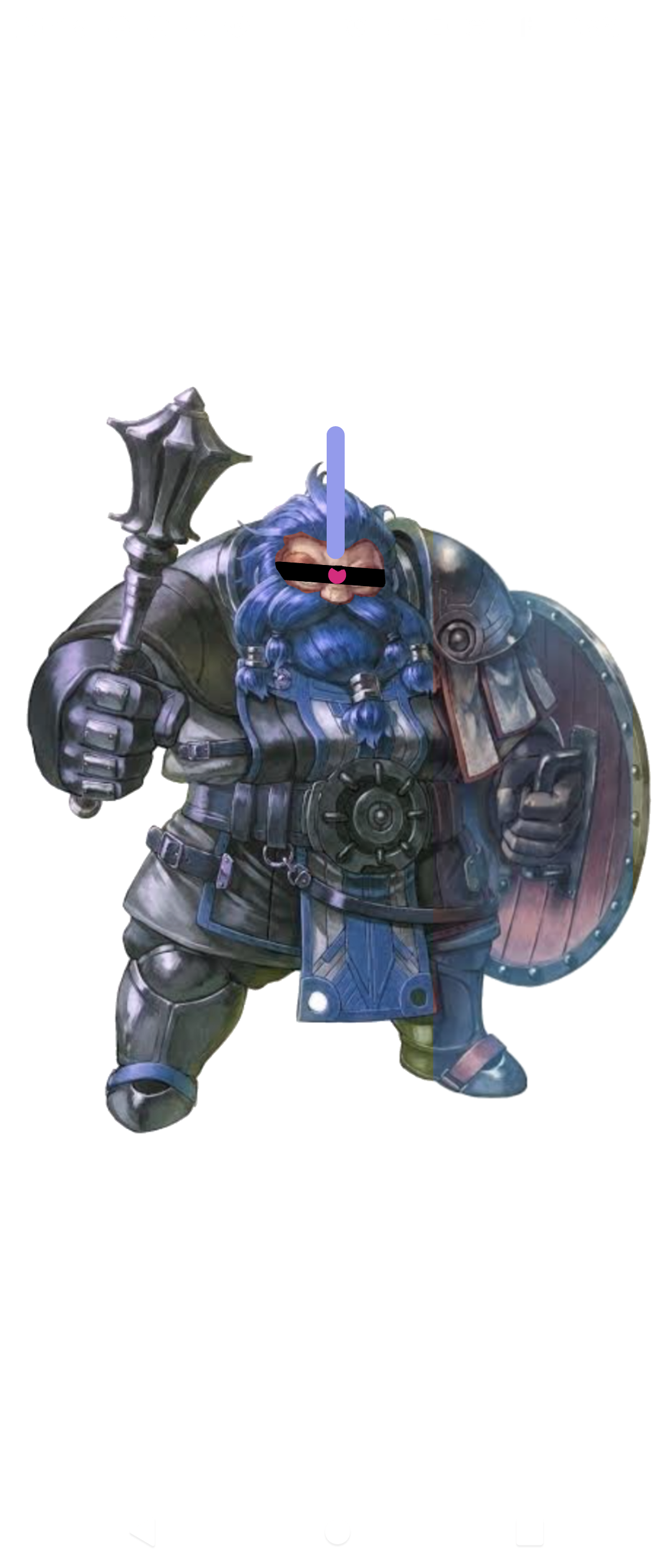 非常に優秀な人材ではあるが、少々頑固なところがあり、世渡り上手とはいいがたい。しかし、鍛冶と戦闘の経験と技術は確かであり、ごく一部の者からは高く評価されている。中でも自身が身にまとっている青い鎧は非常に出来が良いと謳われ、それを身にまとい蛮族を襲撃する姿から、時に「青い巨星」という異名で呼ばれることがある。