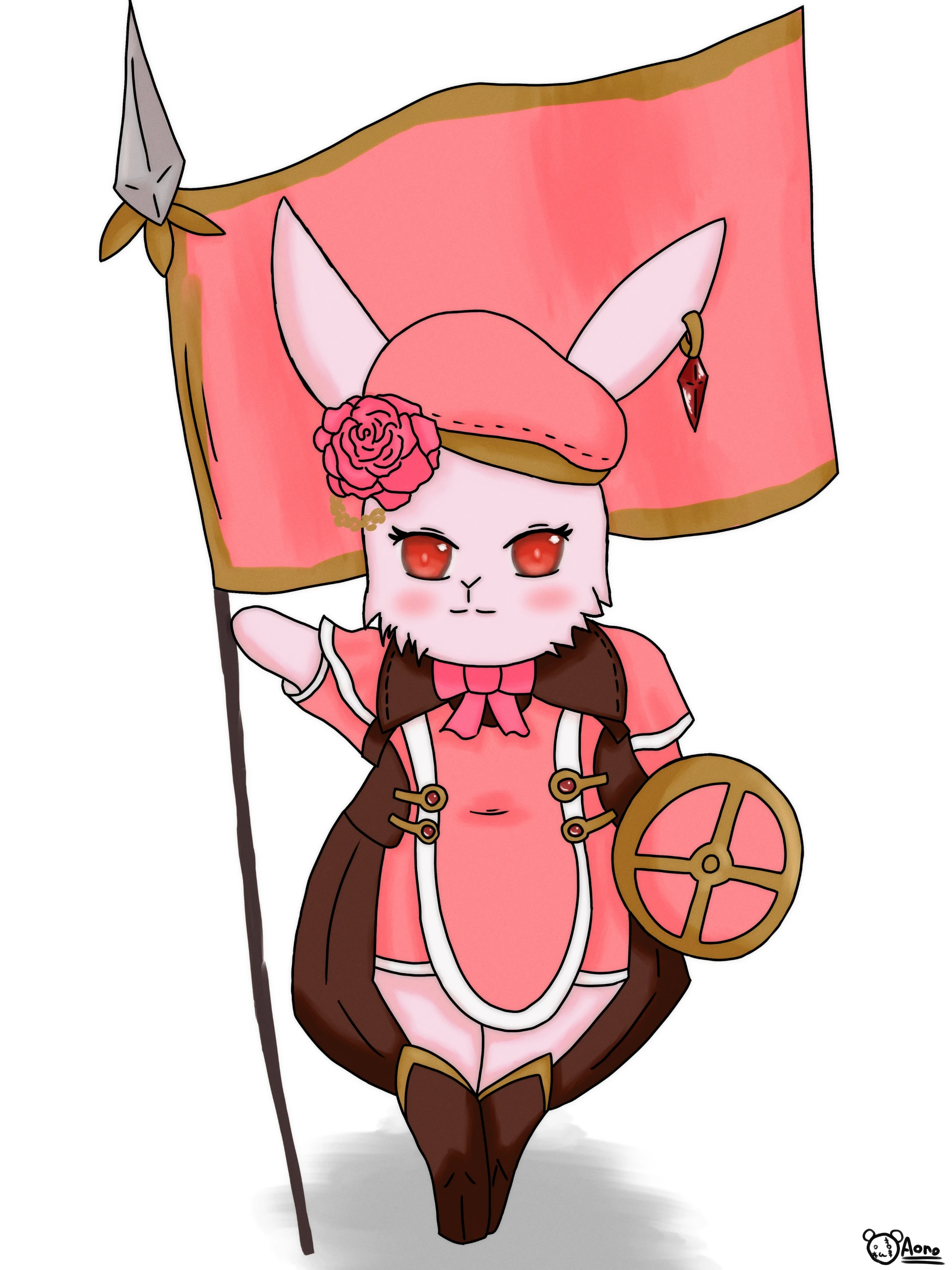 桜色の毛並みを持つ、華やかな衣装に身を包んだタビットの乙女です。