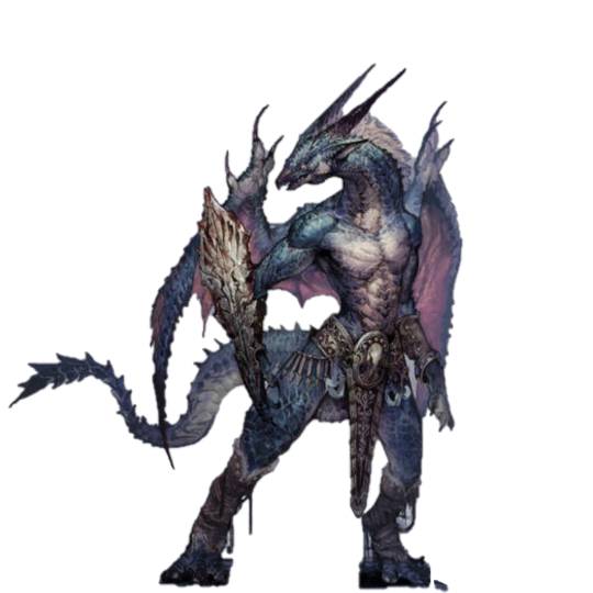 - [鱗の皮膚][尻尾が武器][剣の加護/風の翼]
