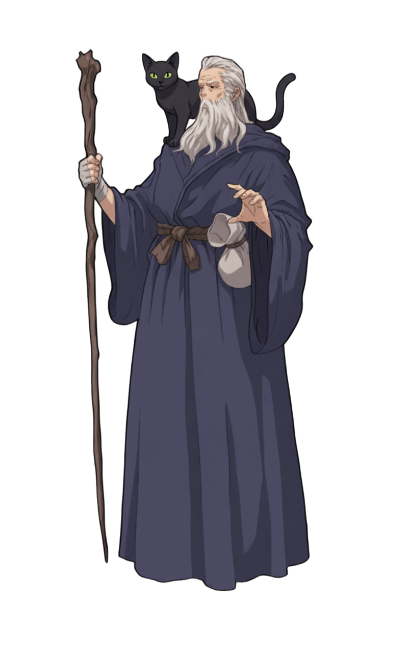 一人称:わし 他人の呼び方:~どの 口調:創作によくある年配者な感じ