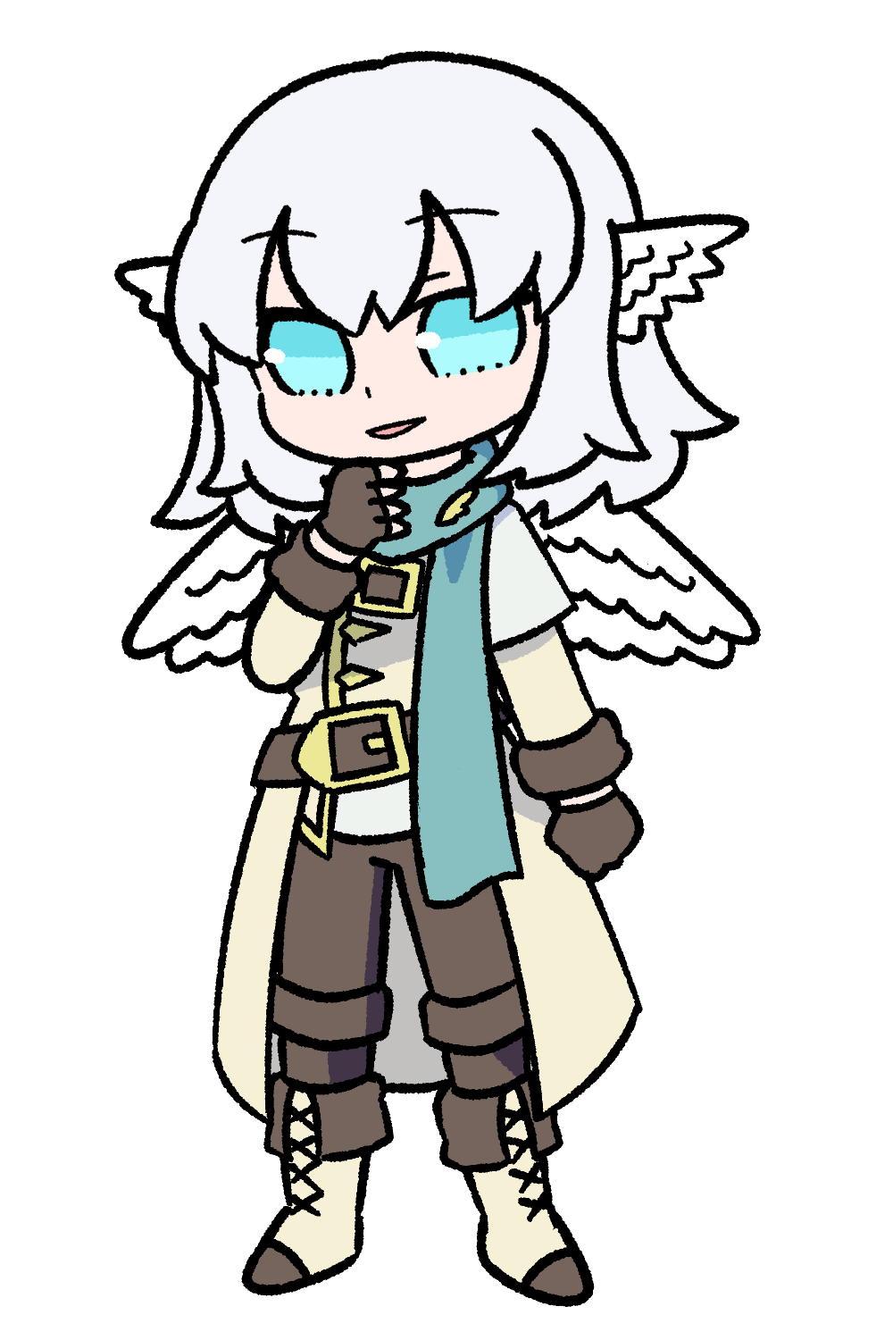 ウィークリングであることを隠しておらず、翼や羽毛もそのままにしている。