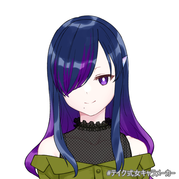 右目がないので髪で隠している。全体的に奈落イメージの群青~紫な感じ。
