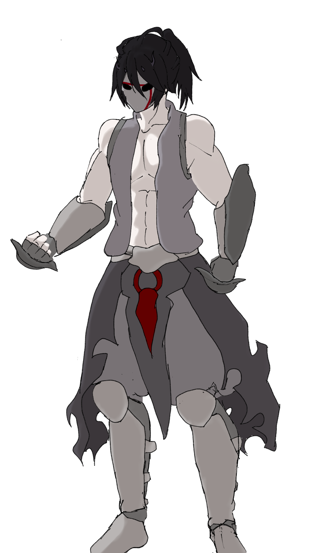・ぼさぼさの長い黒髪を括り、ボロボロの木製の仮面をつけた人物。