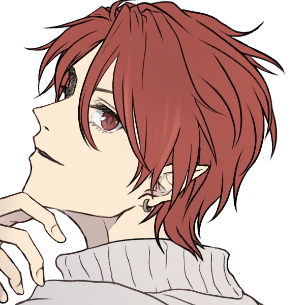 身長185cm 体重70kg程度のやせ型。エルフには珍しい赤髪に赤眼という家系。家名はそこからの由来だとかいう噂。