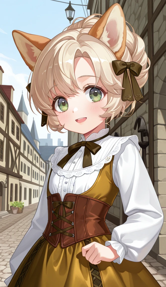 マナリスの町の祭司、金色の髪に翠の瞳のレプラカーンの少女。