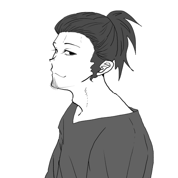 痩せ気味の余裕のある表情をよく浮かべている傭兵の人間