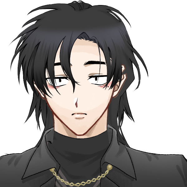 黒髪黒目で長髪を後ろでまとめた長身の人間の男