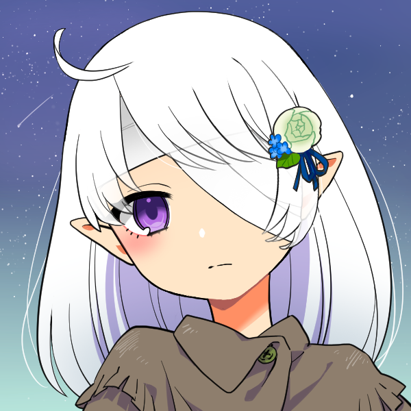 60歳のエルフ 身長は151cmで静かな性格である。紫色の目が皆を怖がらせ、村を追放されている。その際に起きた不良の事故により左目を消失している。
