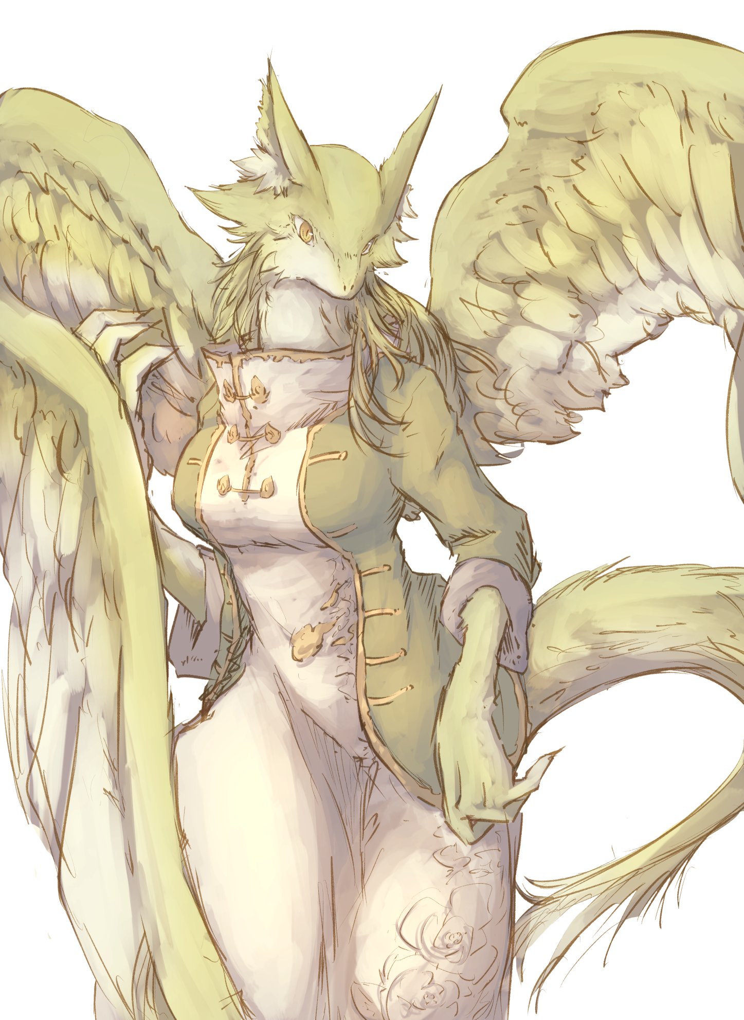羽毛に包まれた珍しいリルドラケン。