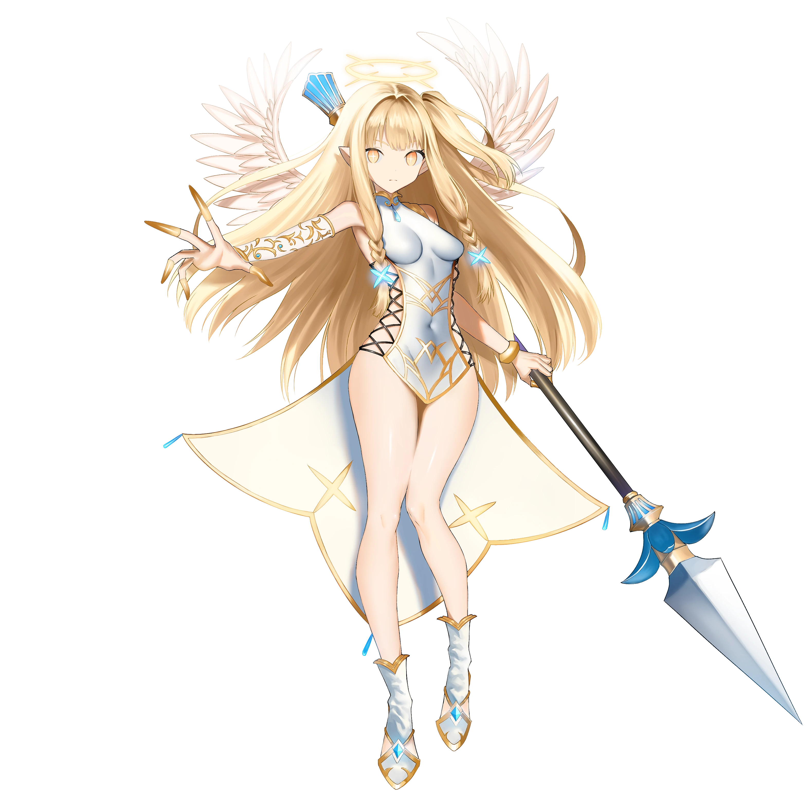 [戦乙女の光羽]自らが落下する場合、その落下速度を「通常の速度」~「羽が舞い散る程度の速度」の間で自由に操れる。意識があるならいかなる状況でも落下ダメージを受けず、転倒しない。同時に、重さ200㎏程度までの他のキャラクターや荷物を運べる。