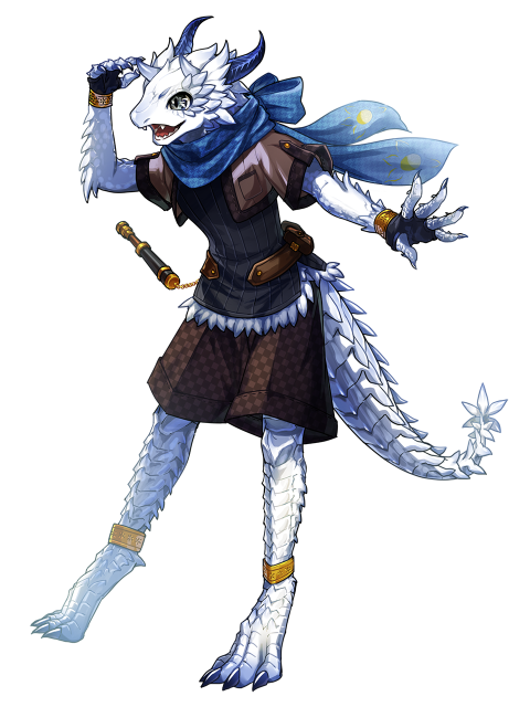 - [鱗の皮膚][尻尾が武器][剣の加護/風の翼]