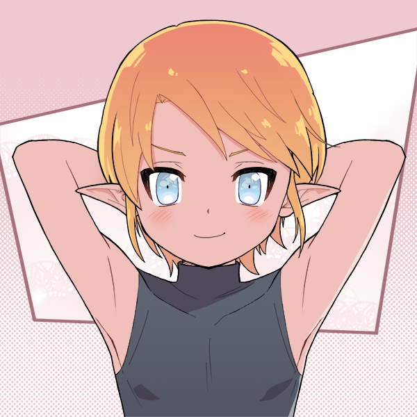 赤寄りの金髪、白よりの蒼眼、肌は若干日焼けしている。