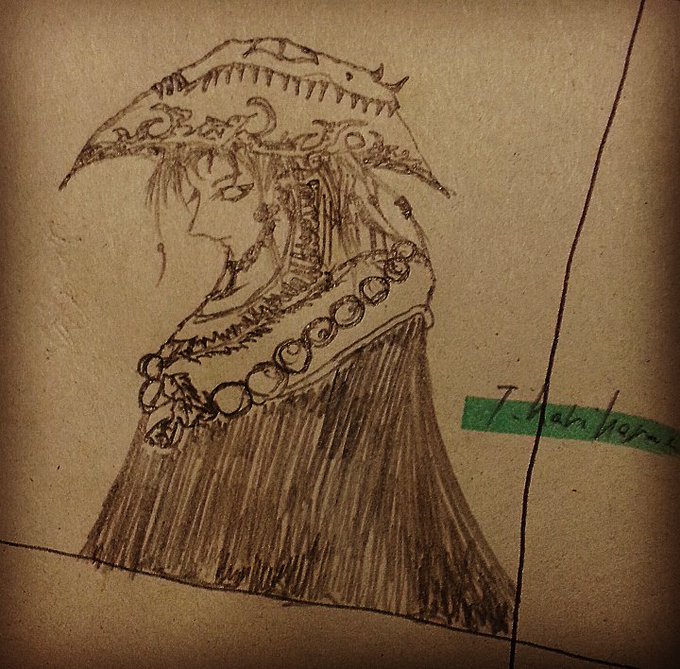 赤褐色の神官衣に、黒地に刺繍入りのターバンを巻いている。