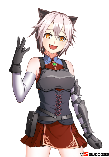 普段は白と黒の混じった髪・金眼の少女で、獣化すると猫の顔(Skyrimのカジートみたいなの)になる。