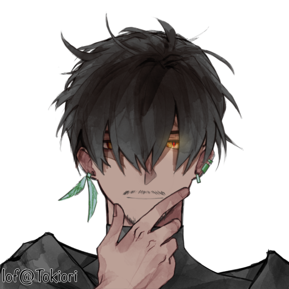- 種族特有の浅黒い肌に、シャドウにしては珍しい黒髪。乱れた長い前髪の下に第三の眼が隠れている。ポジティブに表現するならば、ミステリアスでダウナー。率直に表現するならば、無精髭のなよなよしたおっさん。「矜持なんて捨てたさ」