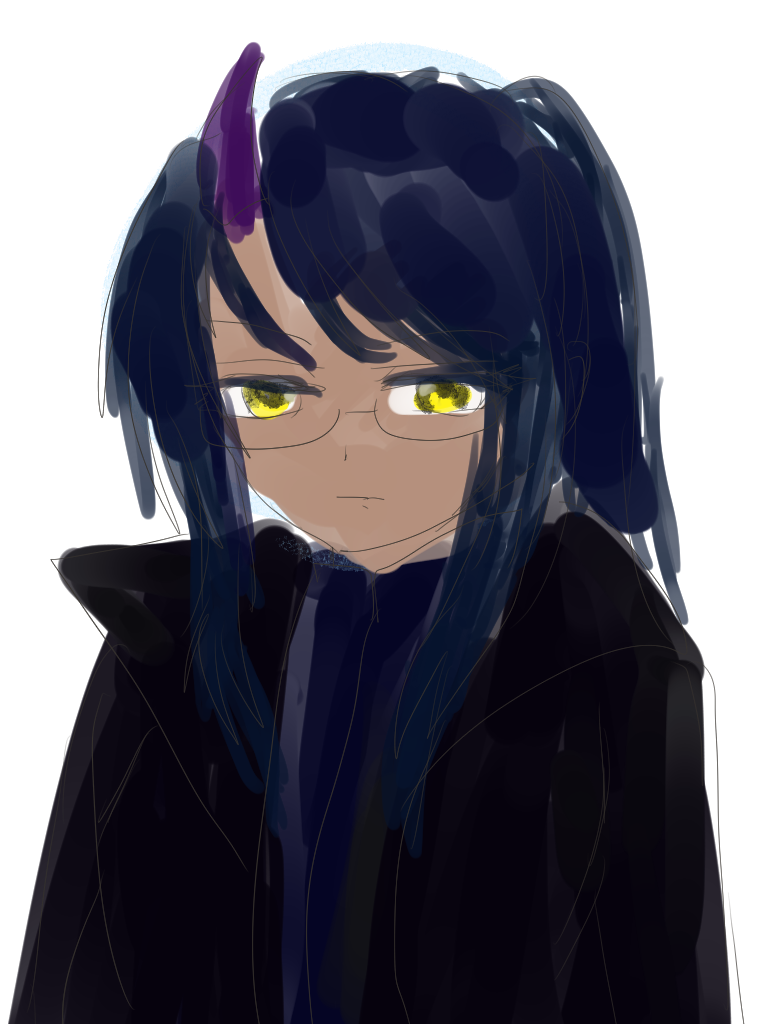 | 髪の色 | 漆黒+闇紫グラデーションのロングヘア | 眼の色 | 金色 |