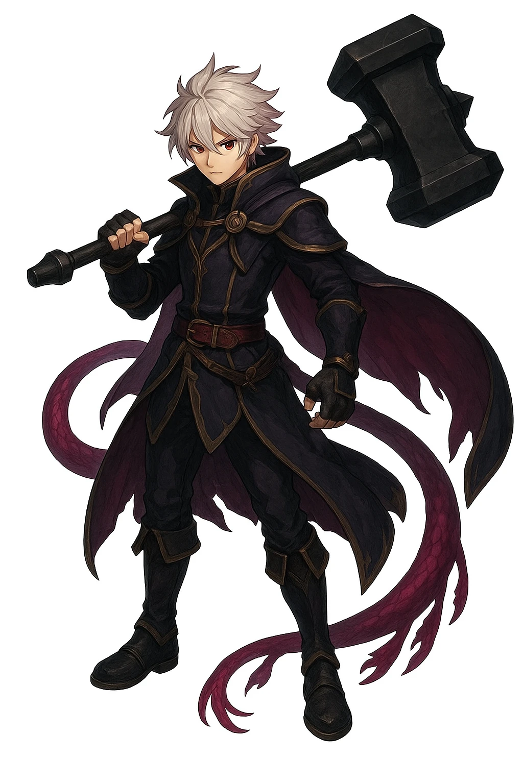 彼は鎚を使うために、自らの居所であった集落を飛び出し、鎚を買うお金を集めるために下位派生武器でウォーハンマーよりも安く購入できるヘビーフレイルを使い、今日も冒険者として活動している。