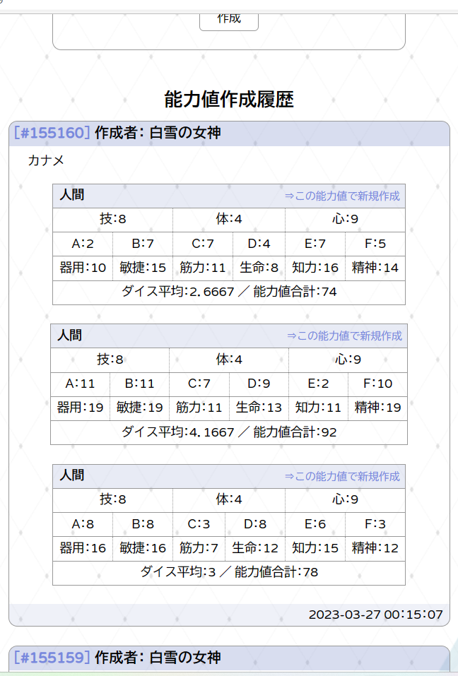 | キャラクター作成 | 3,000| 1,200 |