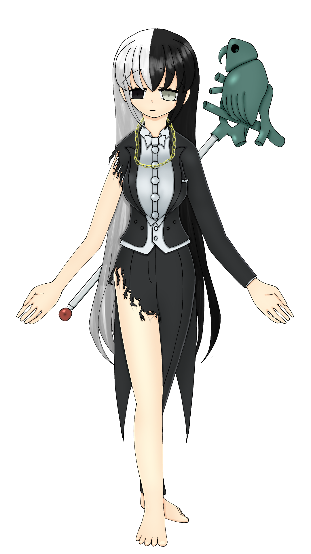 左右で違う色の眼、左右で違う色の髪、そしてなにより、格調高い礼服を身に着けていながら、右側の袖と裾が乱雑に引きちぎられている。