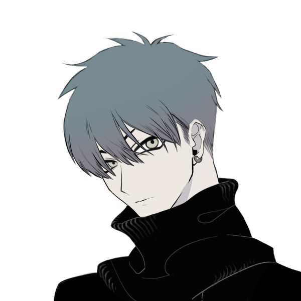 蒼灰色の短髪に吊り気味の銀灰色の瞳。血色が薄く肌も青白いので、時折ルーンフォークと間違えられる。