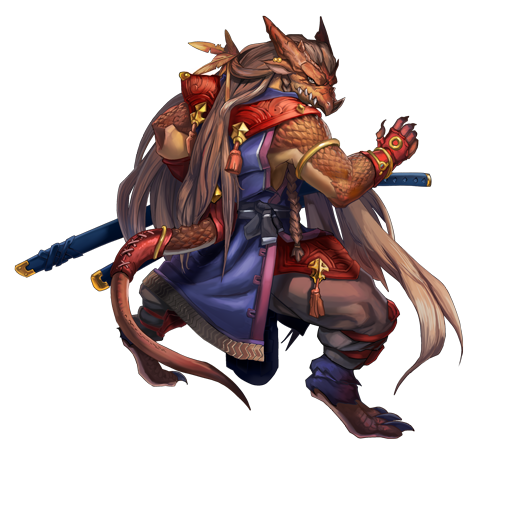 - [鱗の皮膚][尻尾が武器][剣の加護/風の翼]