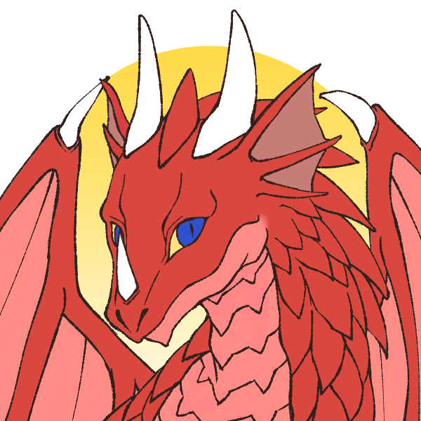 容姿;赤いうろこ、青色の目