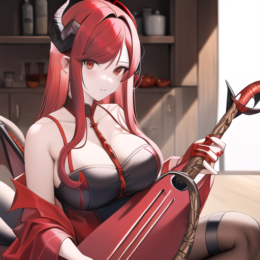赤いマントに身を包んだ、リュートでリズムを奏でる奏者。