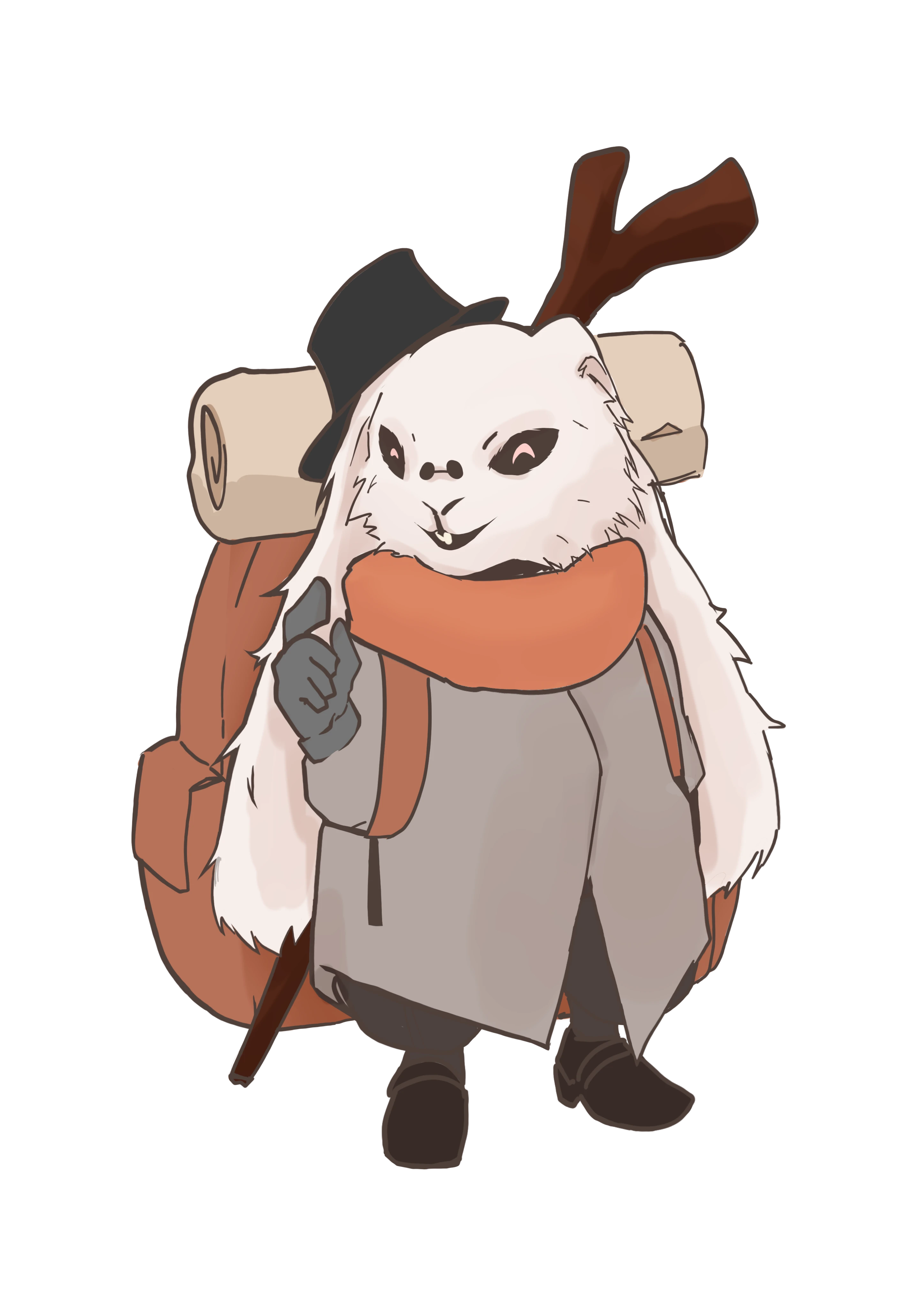 長い垂れ耳、白い毛皮、マント、小っちゃいサングラスに黒い帽子を被っている、どうにも胡散臭いなタビットです。