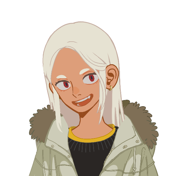 ウサギの”様な”長い耳、白く長い髪、暗めの肌に赤い目の武闘派レプラカーンの女性。レプラカーン種にしては大柄な体格と身長147cm。