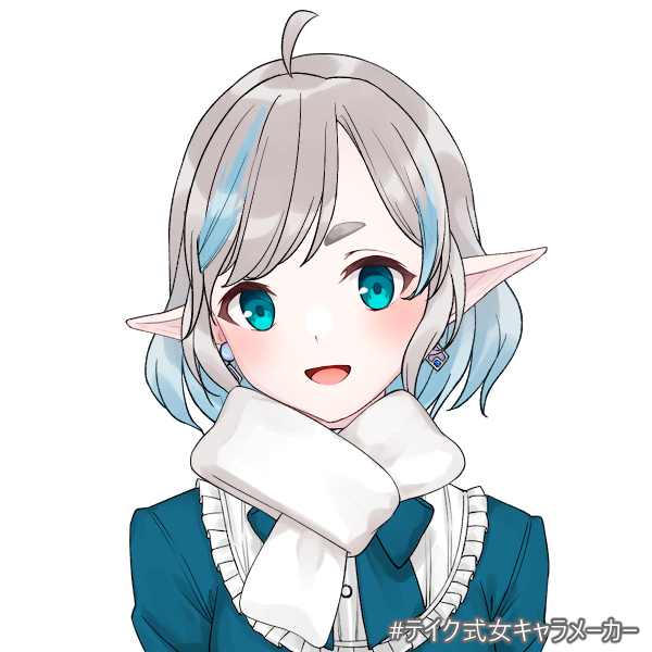 銀と水色の入り混じった美しい髪を持つ。昔から使っているマフラーを身につけている。服は時々による。