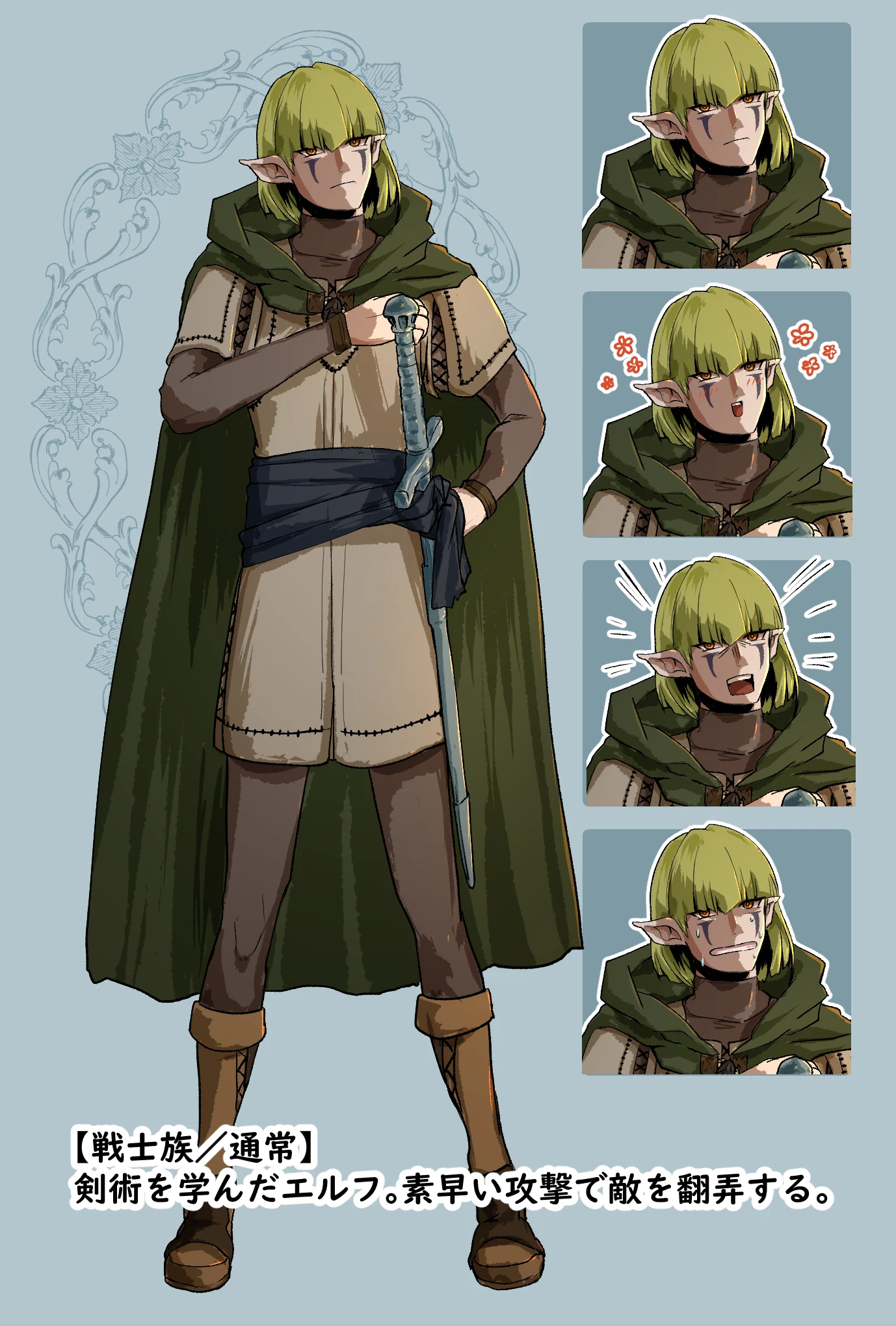 剣術を学んだエルフ。素早い攻撃で敵を翻弄する。