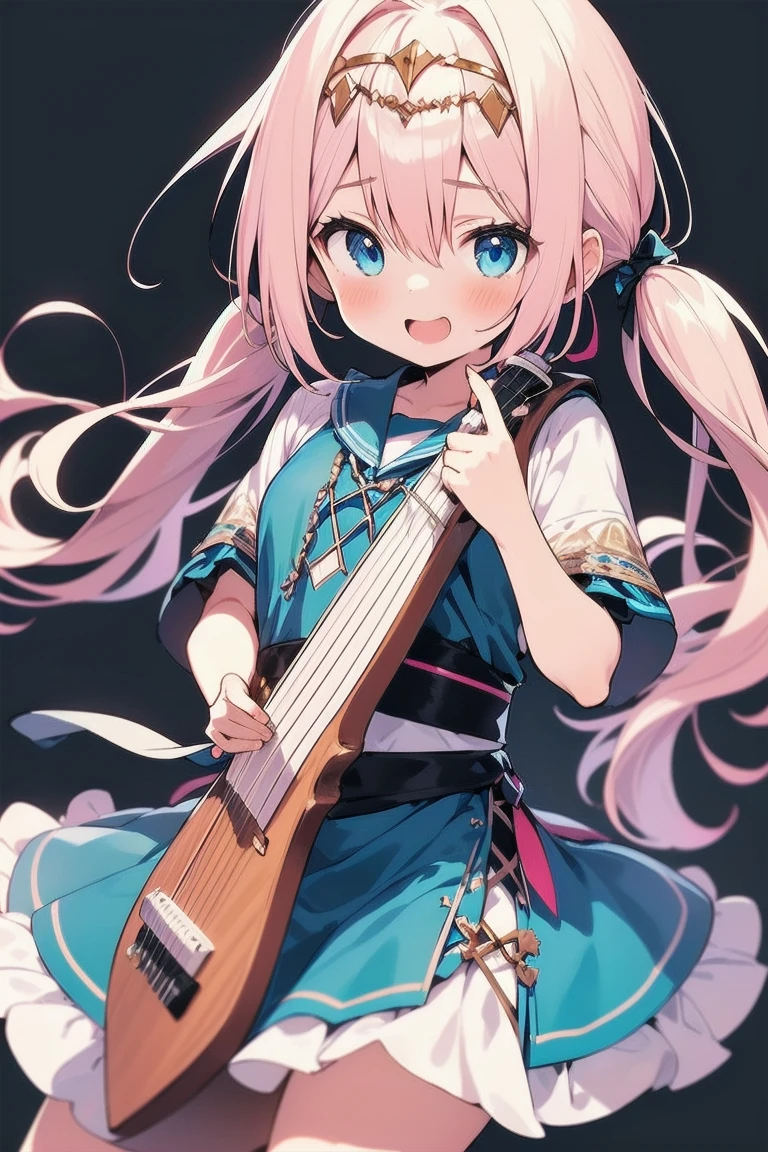 Little Loli with long pink pigtail hair and shiny blue eyes wearing dancer's clothes style anime, bust up, simple background