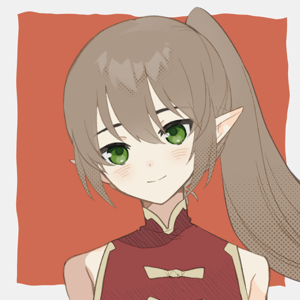 胡桃色のポニーテールに翡翠の瞳が特徴的なエルフ生まれのナイトメアの女性冒険者。