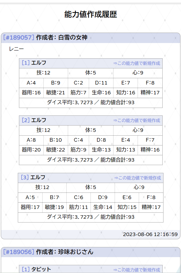 | No. | 日付 | タイトル | 経験点 | ガメル | 名誉点 | 成長 | GM | 参加者 |