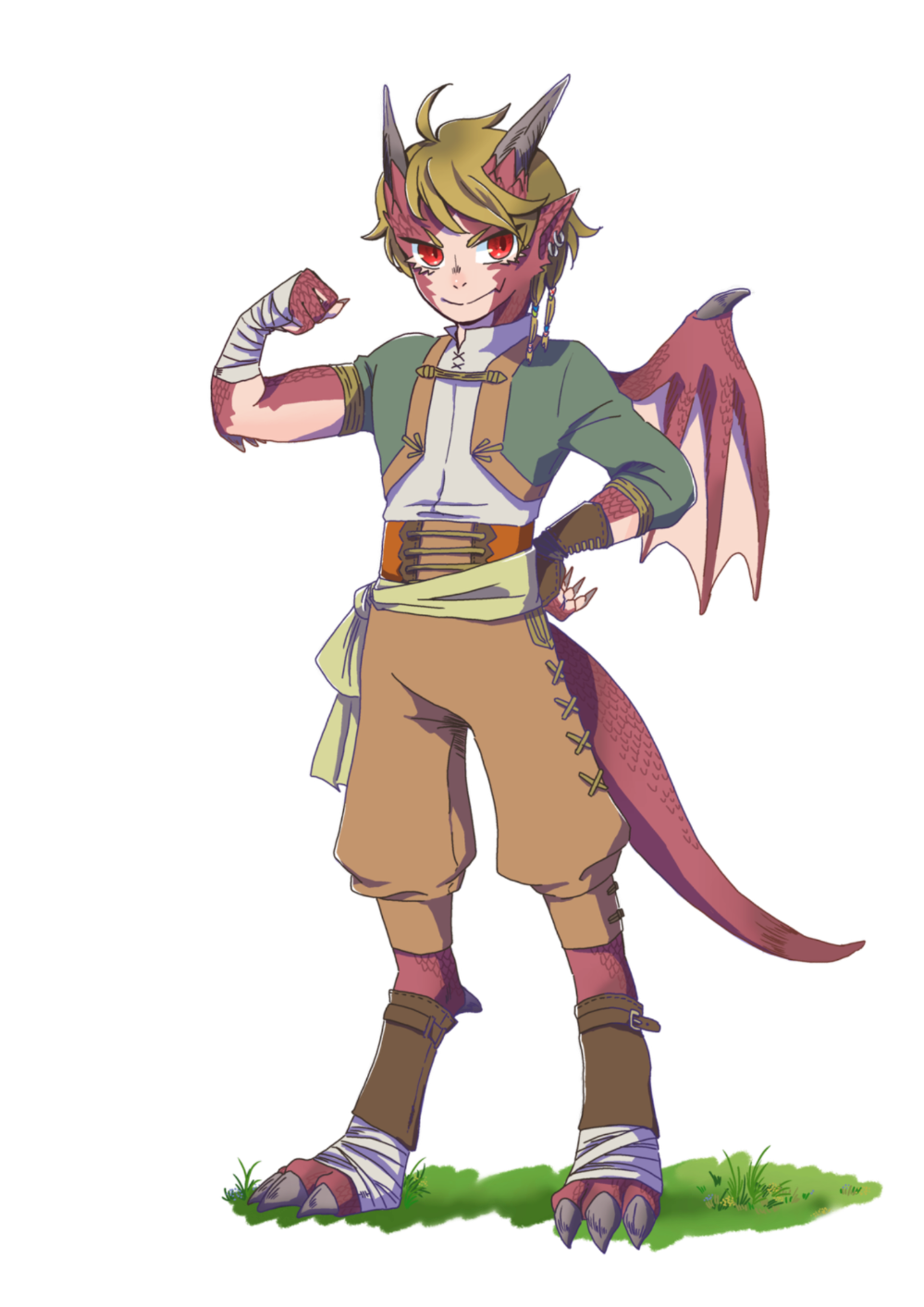 - [鱗の皮膚][尻尾が武器][剣の加護/風の翼]