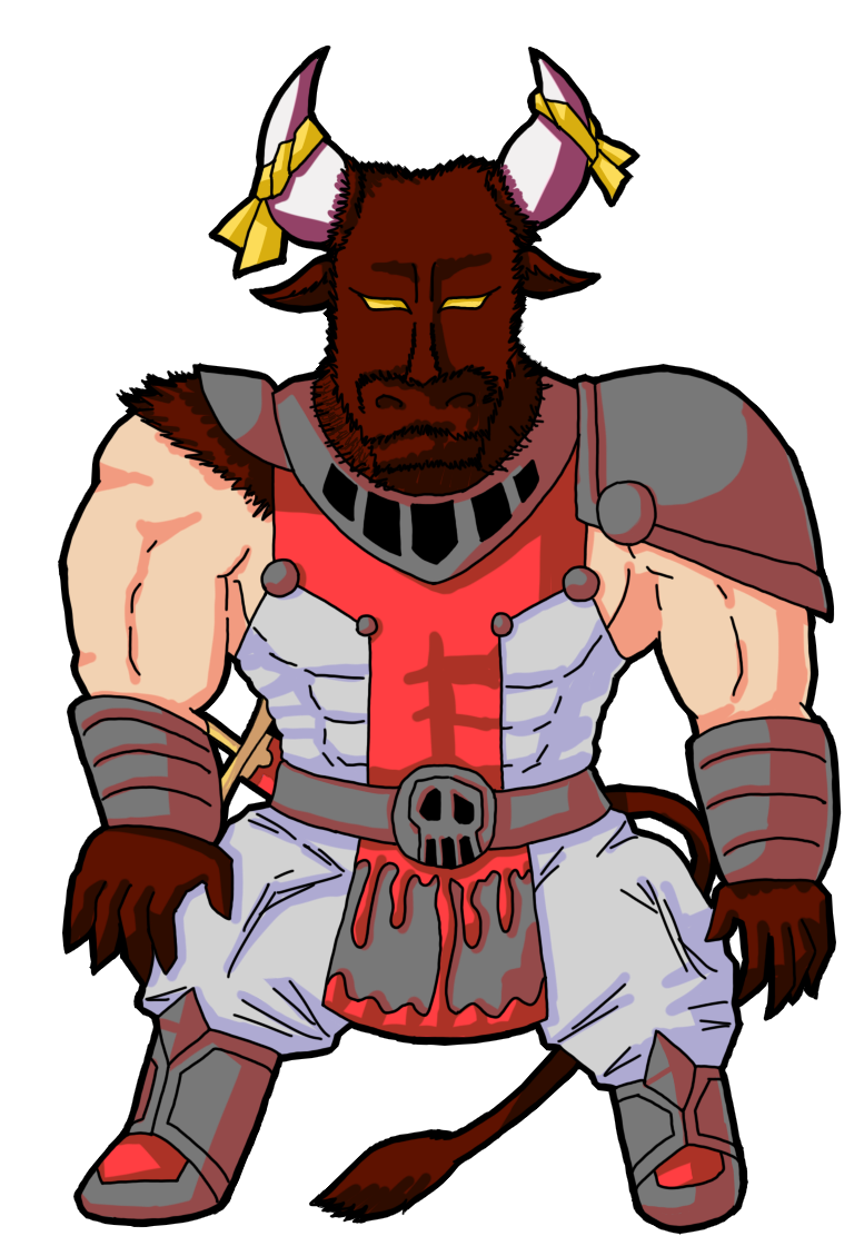 変貌後:ミノタウロス(毛の色はまるで血がくすんで黒くなったような濃い紅)