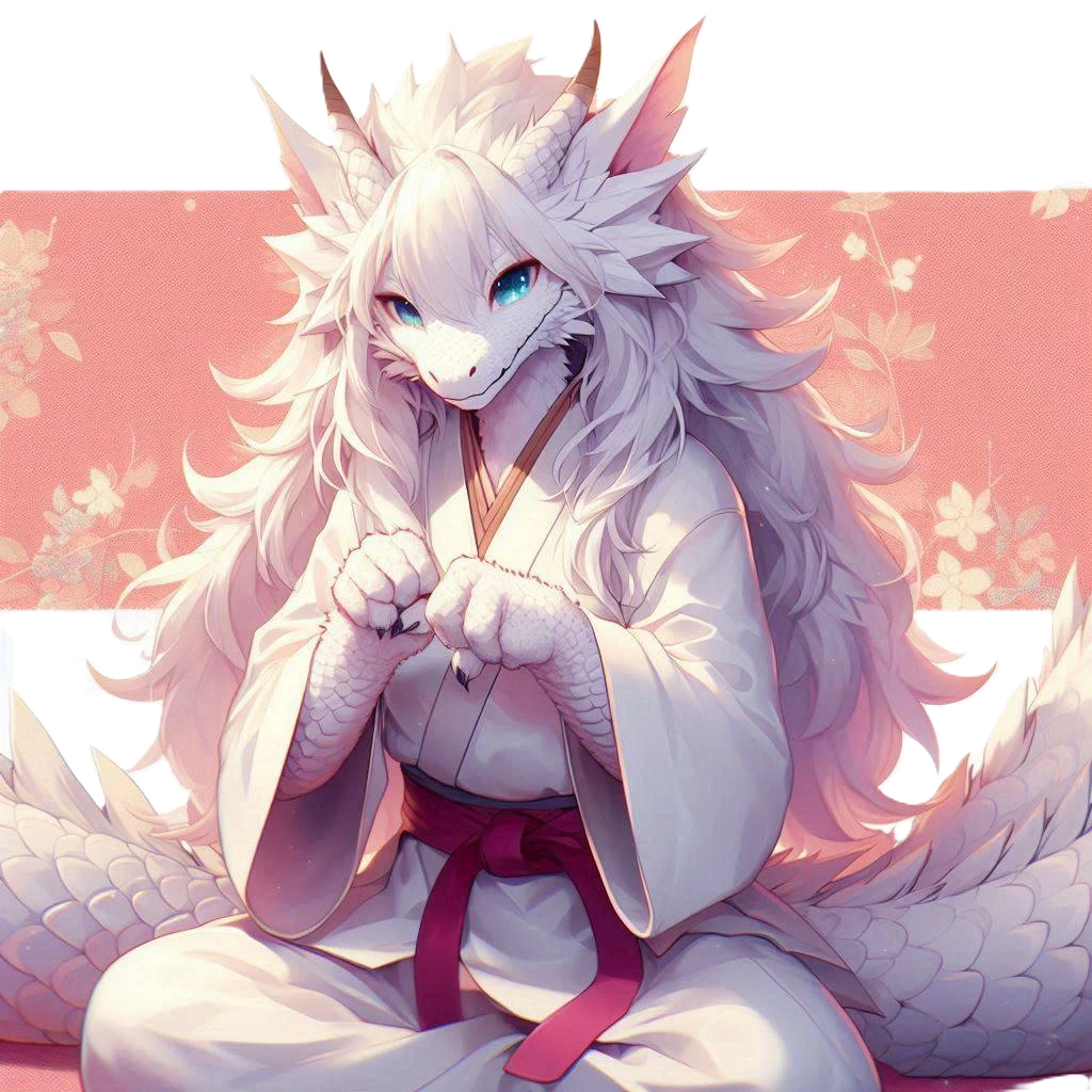 白くてもこもことした体毛に覆われた有毛種のリルドラケン。